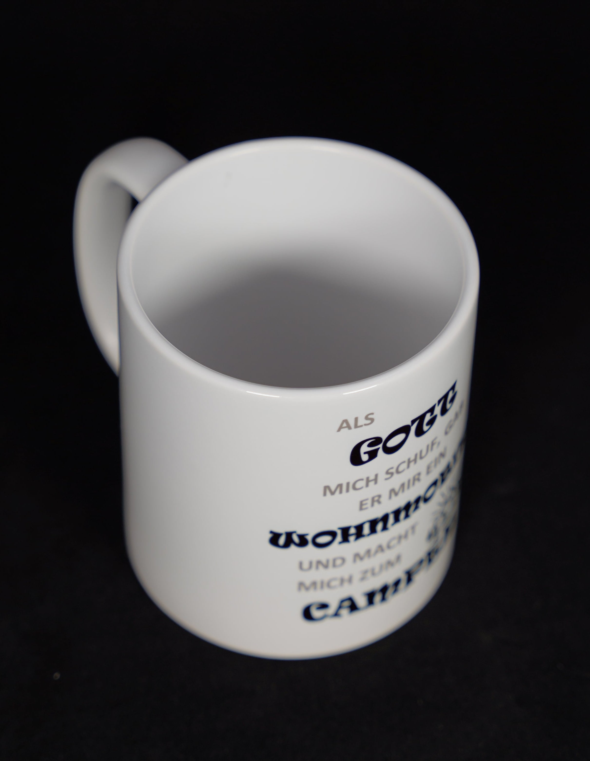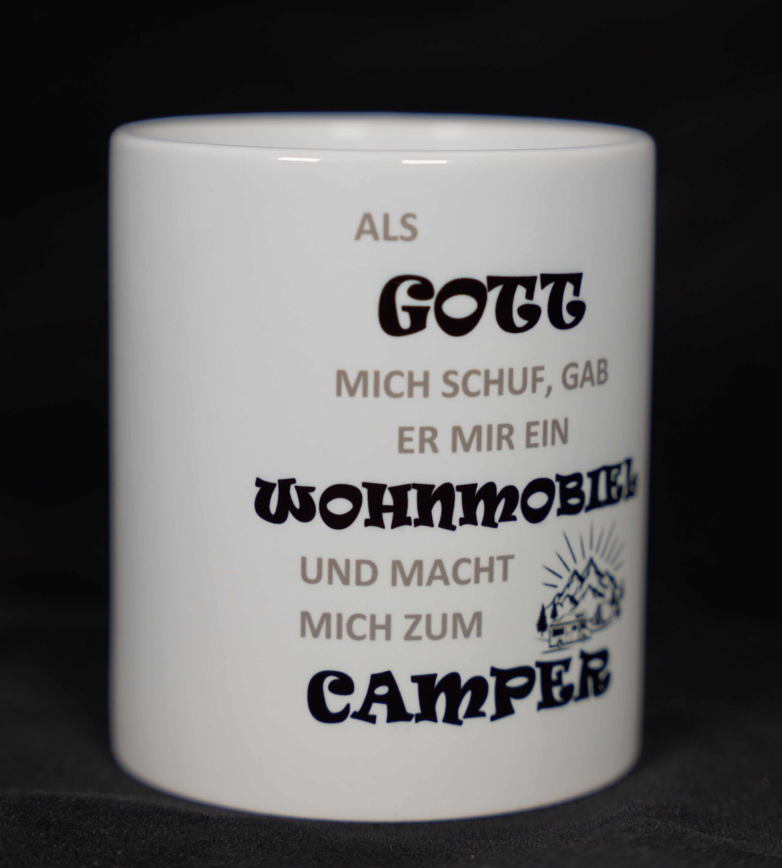 Erleben Sie mit der bedruckten Kaffeetasse "Macht Gott mich zum Camper" einen Hauch von Humor und Qualität. Hergestellt in Deutschland von Design & Druckwerkstatt-Richter, verspricht diese Tasse mit ihrem robusten Keramikmaterial Langlebigkeit und Funktionalität.